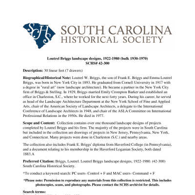 Files contain narrative histories from publications; newspaper articles (including DYKYC 1969); building from Information for Guides of Historic Charleston; hotel brochure (date not indicated); illustrations of the building (hotel envelope and Library of Congress photos); graduate student report (Kim C. Norton, 2006) on the history of the building/property, including historical/chain-of-title research, maps, photos, deeds, and other supporting documentation; correspondence and other documentation related to the purchase of the property by Donaldson, Lufkin & Jenrette (investment group called Charleston Associates), including proposed restoration and projections report and "The Charleston Hotel Project" report (mostly 1966-1968).Collection