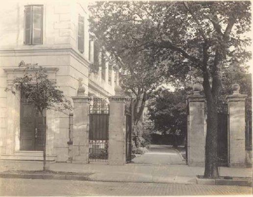 Scan of photograph of 119 Broad Street (Morton Waring House), street (front) elevation, featuring the gate and door.Photograph Details