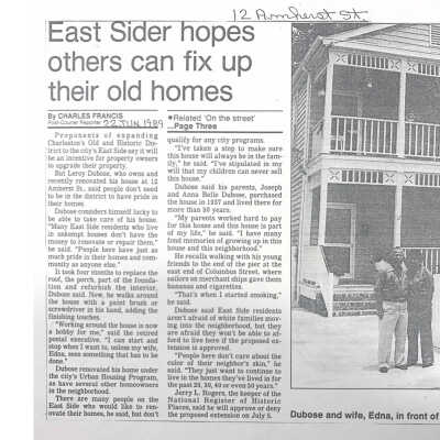 File contains: SC Dept. of Archives and History architectural survey form; news article (1989).