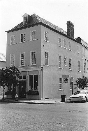 Three-story stucco-covered brick single house, sitting on a plot that was granted to John Beresford (Grand Modell Lot 43). The house was possibly constructed ca. 1801.