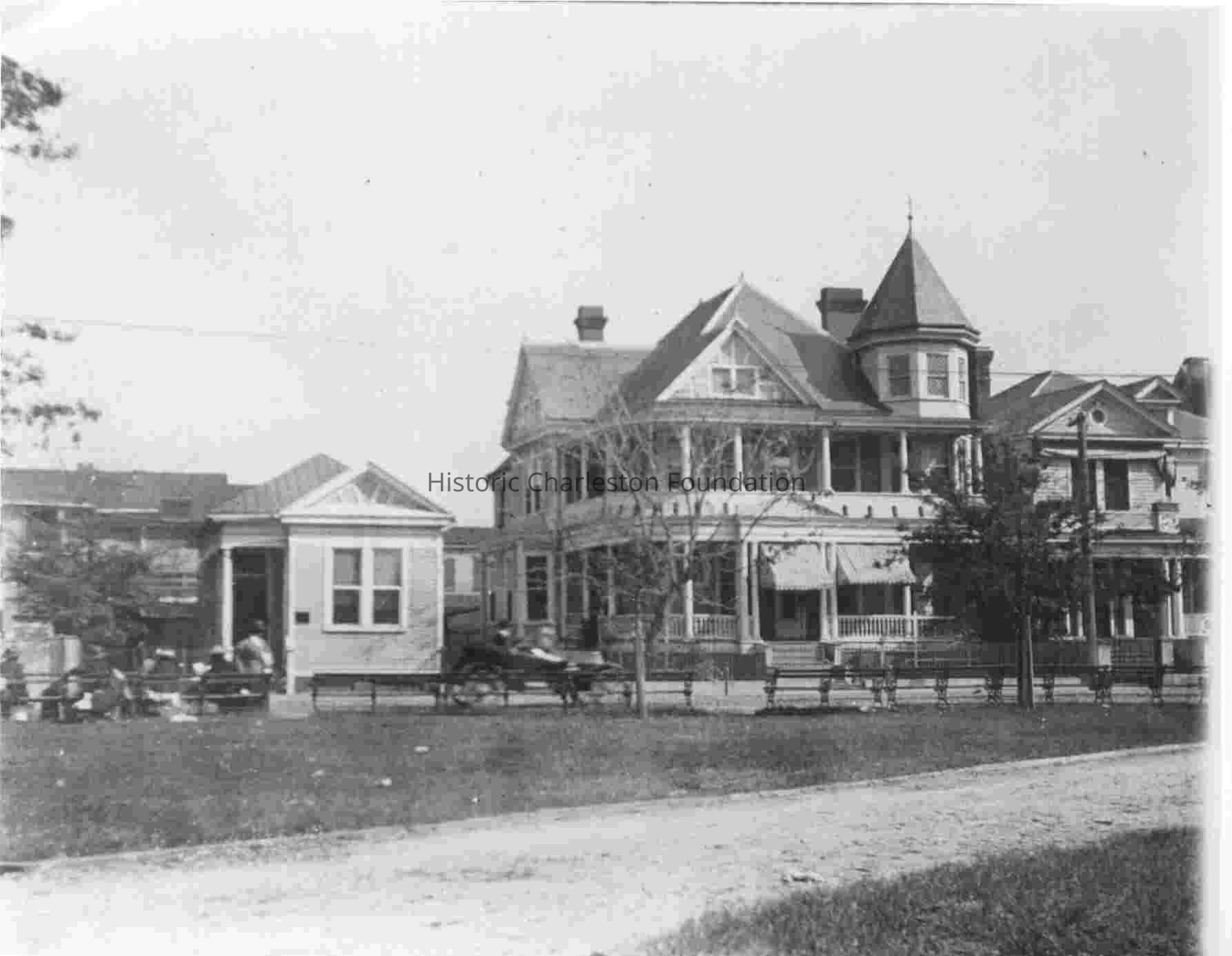 126 Rutledge Avenue, south of Calhoun. View from Cannon Park. Vehicle passing by on street; individuals seated on bench. Originally identified as Dr. Archie Baker's House, 11/20/12.Collection