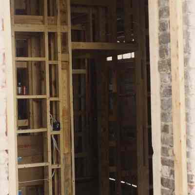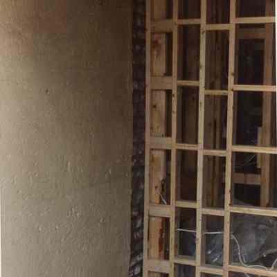 d-e: Interior framework, possibly at the site where the north and south houses were joined.