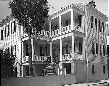 B&W photograph of 128 Tradd Street (Humphrey Sommers House). Street elevation, corner view.Collection