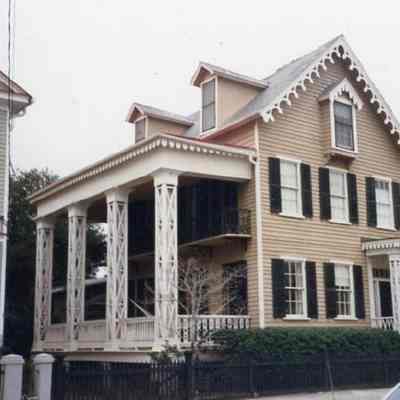b: South (piazza with latticed columns) and east (front) elevations.Collection