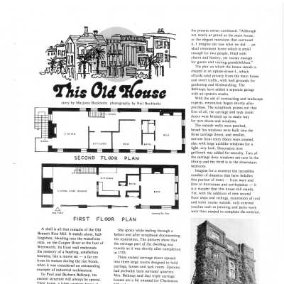 Constructed ca. 1753. Originally a triple carriage house, this structure was first changed ca. 1958 when the second floor was transformed into a honeymoon apartment for one of the newly married children of one of the owners of the front house.