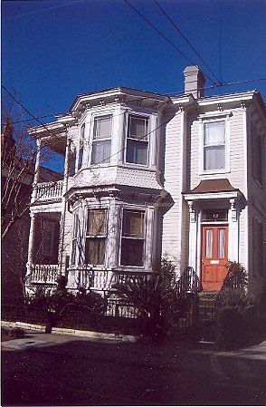 Constructed ca. 1887. Two-story frame residence with a full-height projecting window bay at the south facade, a two-tier piazza along the west elevation, and a narrow rear wing with separate piazza. Built by the Carter Brothers for the merchant Joseph Thompson.