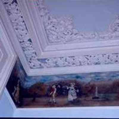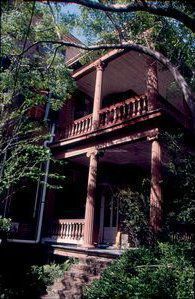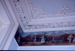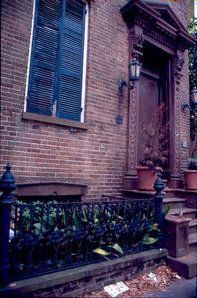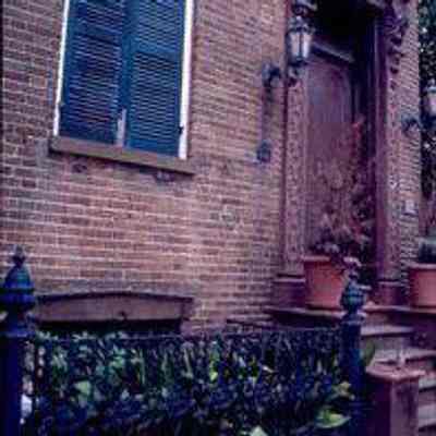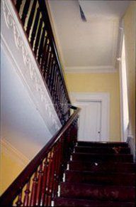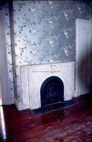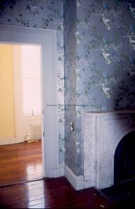 23 color slides, interior and exterior (some shown here). Includes photos of the doorway, cornices, ceiling ornaments, stairway, windows, fireplaces, iron fence, and piazzas. Slides A-P are shown here.Collection