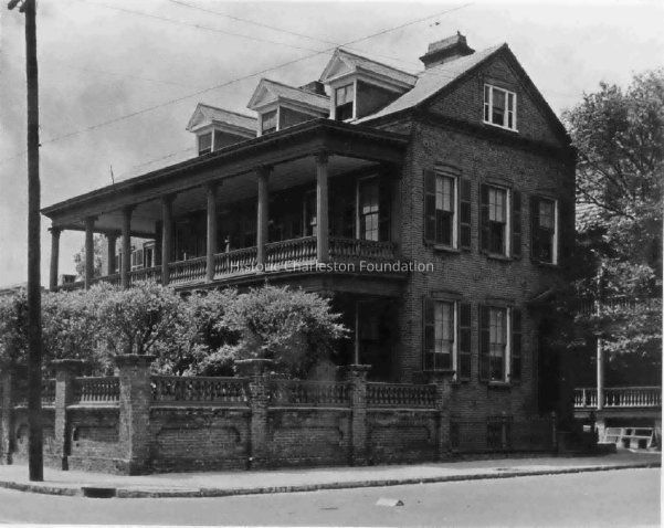 Constructed 1859-60. Brownstone pediment supported by carved console brackets marks the front doorway of this 2-and-a-half-story house built by a wholesale grocer and commission merchant a few years before the Civil War. Built on a corner lot, the house is ornamented on the front with brick corbeling and brownstone lintels and sills. A double-tiered piazza with Ionic columns on the first floor and Corinthian columns on the second shades the Wentworth Street side of the house and overlooks a garden space enclosed by a 19th century wall with brick piers, paneled brick coping, and a wooden balustrade.