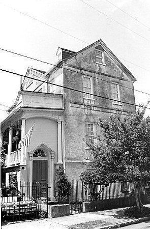 Constructed 1823-28. The New England-born chancellor of the Equity Court of Appeals, Justice Benjamin Faneuil Dunkin, built this 2½ story Charleston single house on a raised foundation a few years after building his own residence on the lot immediately to the west. A late Neoclassical pedimented architrave with semicircular transom and engaged Tuscan columns provides entry to a piazza with similar columns supporting a wooden arcade. The surviving kitchen building, modified in the late 19th century, remains on the Warren Street elevation.