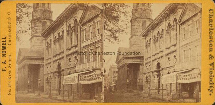 Site of the signing of the Ordinance of Secession in 1860. The building and its neighbors were destroyed.