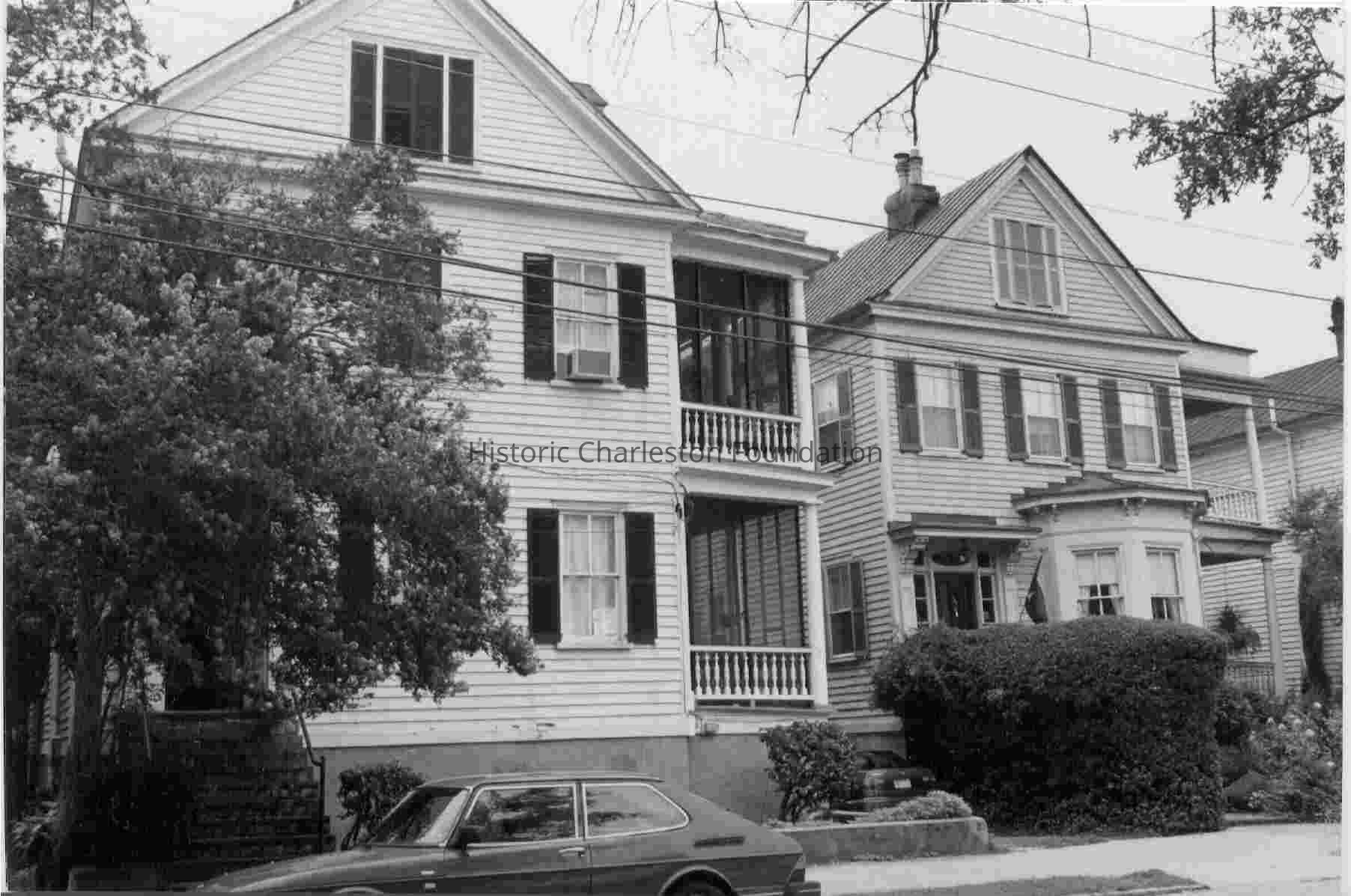 One of a row of elegant Victorian single houses constructed after the fire of 1861, which destroyed earlier buildings on the block. 135 John Peter Merkhardt, a local "capitalist" of German descent, built the pair of substantial frame houses at 135 and 137 Broad Street in the late 1870s. The house at 135 Broad Street was his residence; the house next door at 137 Broad Street was built as a rental unit. Both houses stand on land which had belonged to Miss M.A. Seabrook and was in the path of the great fire of 1861; the lots remained vacant into the late 1870s. The 2 houses have several characteristics in common. Both are 2½ stories of frame on a high, stuccoed brick basement, and three bays wide, with a tripartite window in the front gable. Both have simple boxed cornices above plain friezes. The west slope of the gable roofs of both houses contain dormers with pediments, while chimneys rise from the east slopes.