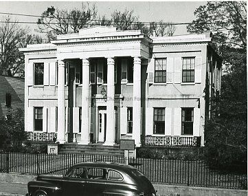Constructed circa 1838; restored 1970s. Russell Warren, architect. Unlike most of the houses in the village of Harleston this monumental dwelling sits back from the street and features a front facing portico supported by columns with Temple of the Winds capitals. The house was designed by the Rhode Island architect, Russell Warren, kinsman of Charleston merchant Nathaniel Russell. Built by a dry goods merchant, the house was advertised for rent with a description that mentioned its "handsomely laid out garden," its bathing house, and running-water conveniences." (Poston, Buildings of Charleston.)