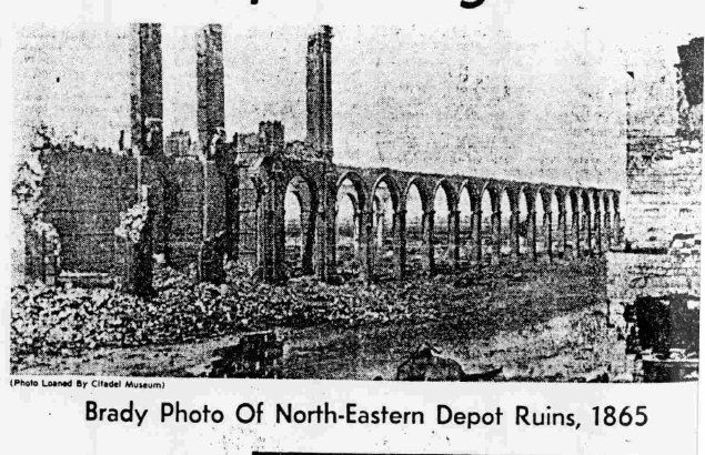 Constructed ca. 1866-67; rehabilitated late-1980s. A masonry building on this site, the original Northeastern Railway Depot, burned in the evacuation fire in 1865. The railroad company had begun construction of a new depot on this lot by 1866 and completed it by 1867. The present building, the eastern core of the former depot complex, retains its closed gable roof, brick walls, and arched openings along East Bay Street. Through various renovations, however, the latticework in the gable, the doors, and other features were lost. (Poston, Buildings of Charleston.)