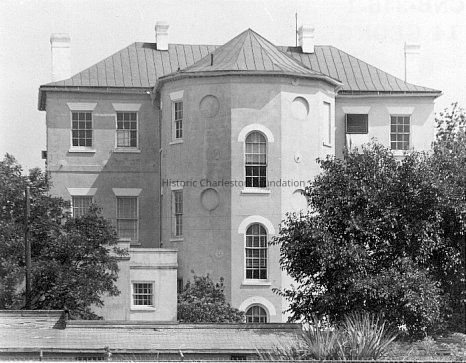 Photographer's description/note(s): Frances Motte Middleton, widow of John Middleton, [married] Major Thos. Pinckney 1797, house completed later. [Later occupied by Charleston Light & Water Co. c. 1870 (a private company), City of Charleston c. 1917 (Commissioners of Public Works)]. In the north side, semi-octagon bay was an oval well interior stair of cantilevered stone, wrought iron balusters and wood handrail, removed ca. 1935. This and the stair at 64 S. Battery were two of the rare interior wrought iron balusters in the city.