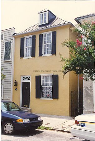 Constructed ca. 1740; restored 1920s. Two of Charleston's earliest townhouses, these buildings, 2½ stories and two rooms deep, are largely constructed of Bermuda stone, a coquina stone imported from the Caribbean. Early research indicates that merchant Alexander Perronneau built the buildings as investments, probably after the fire of 1740. Unheated front rooms and full cellar with a large cooking fireplace and bake oven suggest that the tenement at 141 Church was built as a combination commercial building and residence with the family quarters located behind the shop room opening onto the street. It was owned by the well-to-do craftsman and planter Paul Smiser in the late-18th century and described in his will as "my Bermudian stone tenement in New Church Street." (Poston, Buildings of Charleston.)