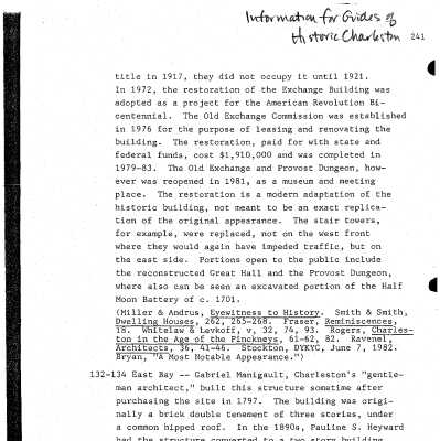 Buildings of Charleston (see Abstract), pg. 141-142Created By