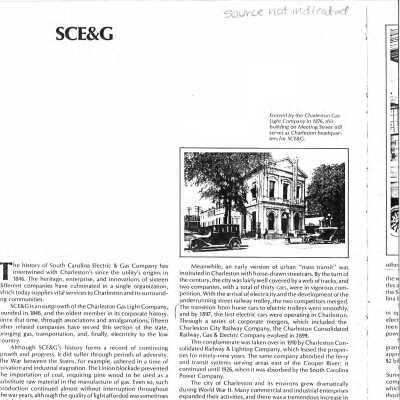 File contains newspaper article (1969 DYKYC); "Historic Structure Research (Alexandra Jones/Houselore, 2018); building history from Information for Guides of Historic Charleston; description of The Charleston Gas Light Company from "Resources & Attractions of Charleston" (ca. 1898); history of South Carolina Electric & Gas (SCE&G) from publication (source and date not indicated).Collection
