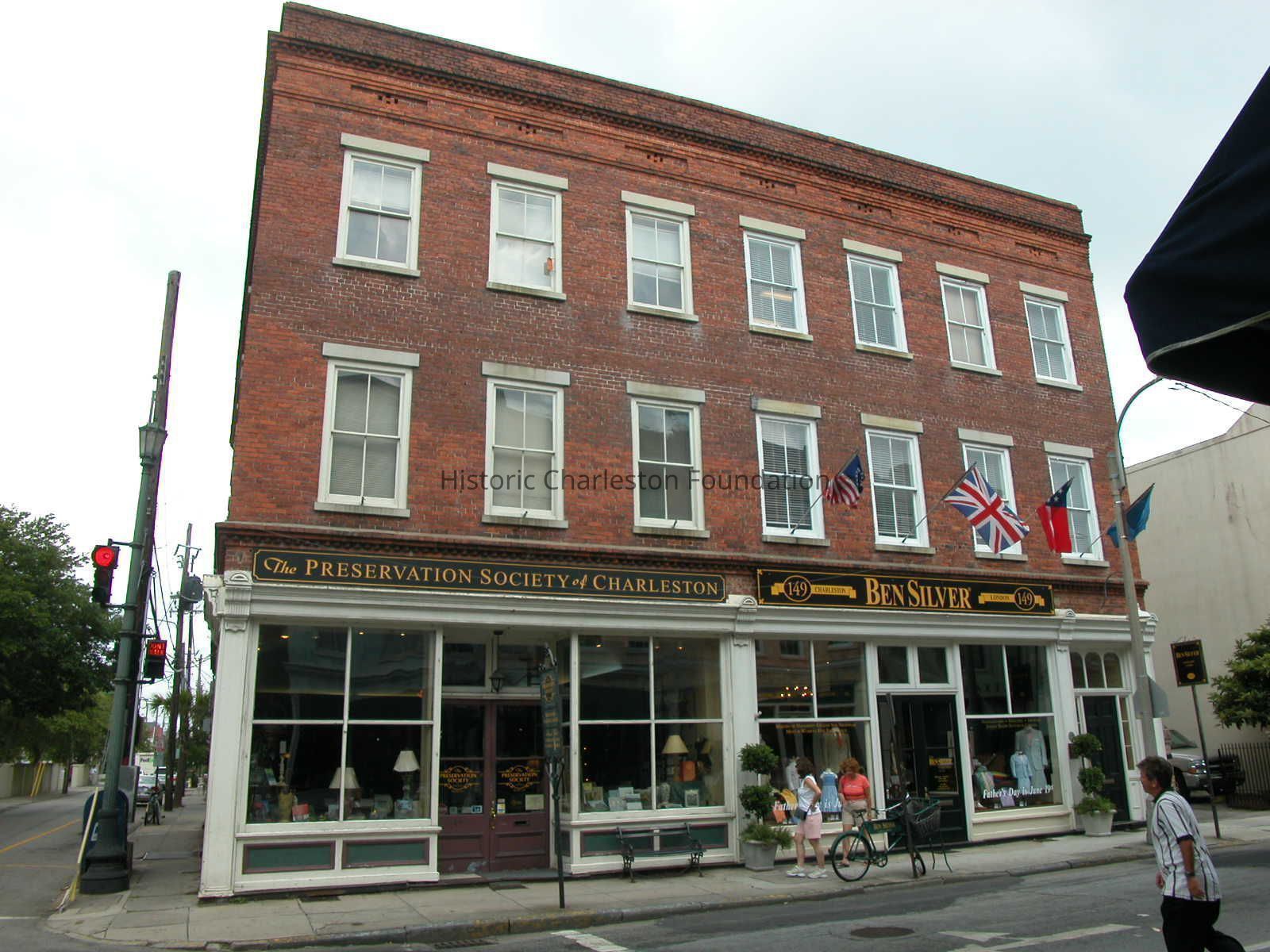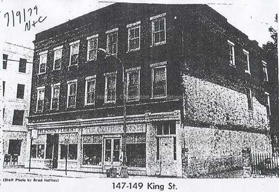 Constructed 1878-80; renovated with additions 1890. The 3-story brick double building at 147-149 King Street was constructed between 1878 and 1880 as the grocery of Ernst J. Hesse, a prosperous merchant of German descent who lived in Harleston Village. By 1890 the property was divided and featured 2 storefronts of equal proportion. Occupants include a series of grocers, furniture and tinware merchants, booksellers, antiquarians, and florists. The Preservation Society of Charleston purchased 147 King Street in 1978 as its headquarters. The design of this structure is typical of late-19th century commercial buildings on King Street. Distinguishing features of the storefronts include oversized glazed windows, paneled bulkhead, cornice molding, and central entries with double doors and transoms. Rear piazzas with an entry to the upper stories of 147 King Street mark the west side of the building.