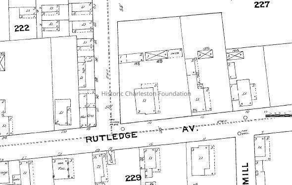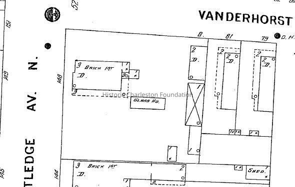 Constructed by 1888. Three-story house at the corner of Rutledge Avenue and Vanderhorst Street, torn down for an apartment project in the late 1950s.