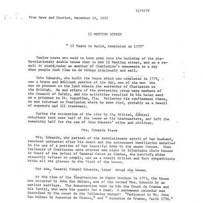 15 Meeting Street (John Edwards House)Entry/Object ID