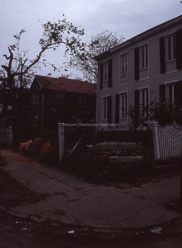 Two color slides of 15 Thomas Street (Samuel S. Mills House), taken soon after Hurricane Hugo. Slides are dated October 20, 1989.