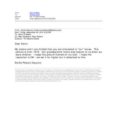 Sent by the granddaughter of the homeowner to Kevin Eberle via email on 9/4/2015.Copyright