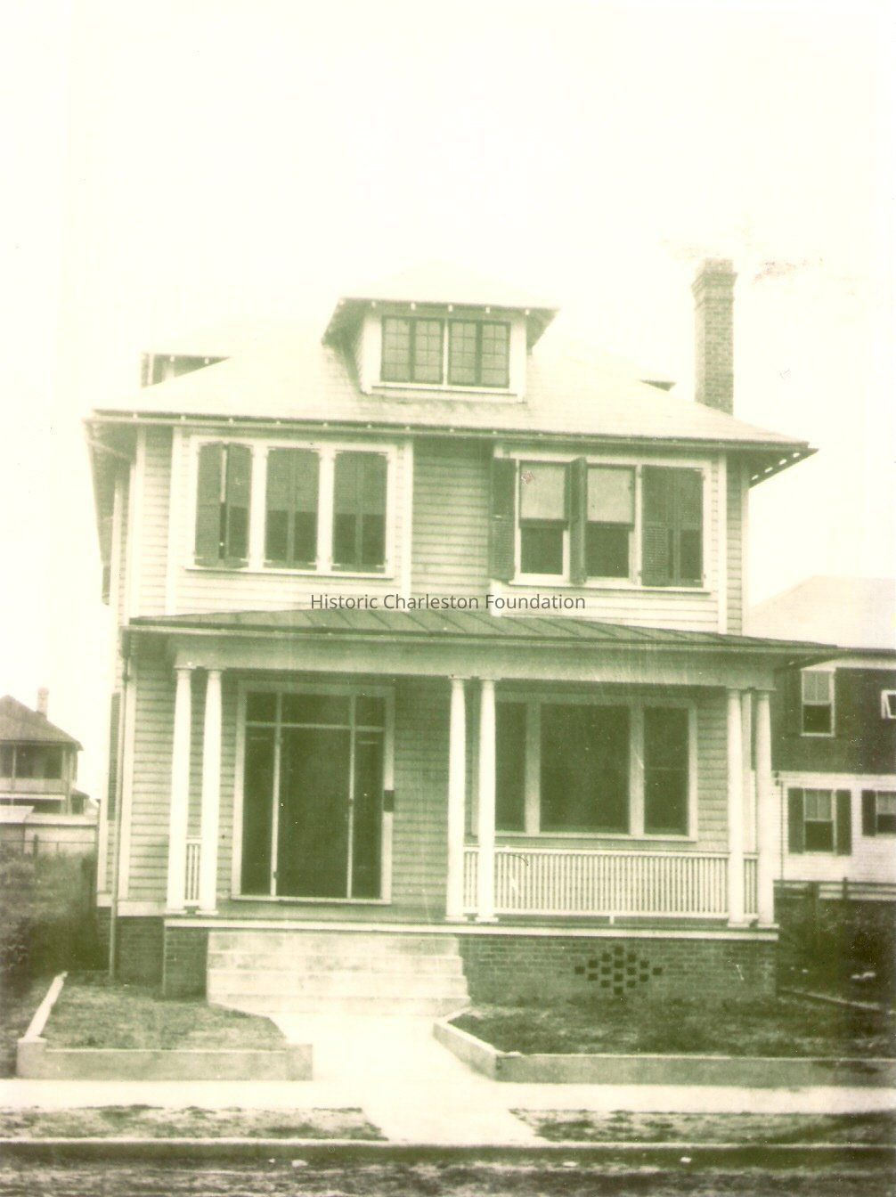 B&W photograph (scan) of 151 Moultrie Street, front elevation, soon after its construction in 1918.Collection