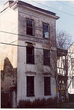 Constructed pre-1830. A Charleston single house; uncertain whether the original construction included an attic or full third floor but at some time in its history, the third floor was altered to a wood frame full third story.