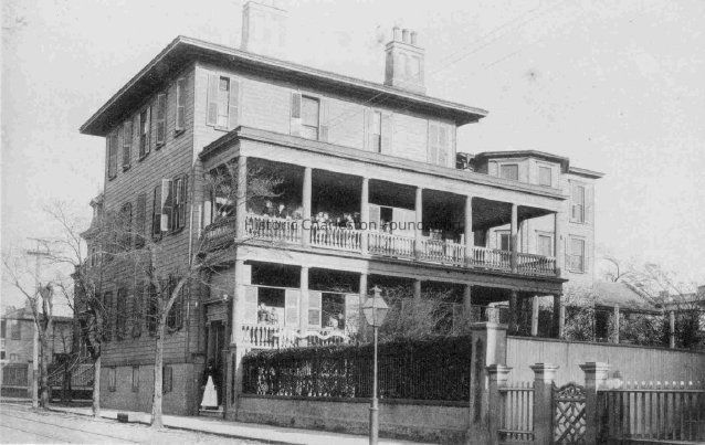 Constructed 1849. Build by the wealthy merchant Benjamin Lazarus, a Sephardic Jew, this 3-story frame dwelling on a masonry basement later was used as the Charleston Female Seminary, also known as Miss Kelly's School. Kelly's philosophy was that the school "is designed for the education and training of Christian women." It was during its tenure as a school in the late-19 century that a large 3-story wing was added to the south. However, many of the original elements survive, including beaded weatherboard siding and window surrounds.