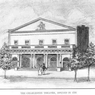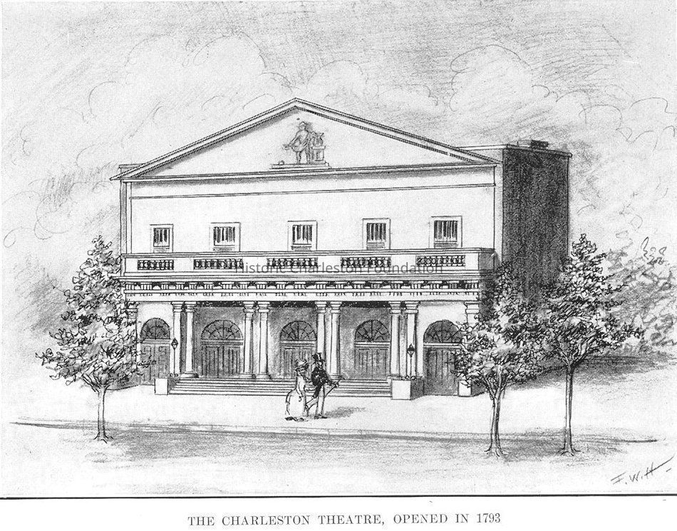 File contains brief narrative history; copy of McCrady plat/drawing (no. 3422) of the Charleston Theater previously built on this site; newspaper article (DYKYC, 1982)..Collection