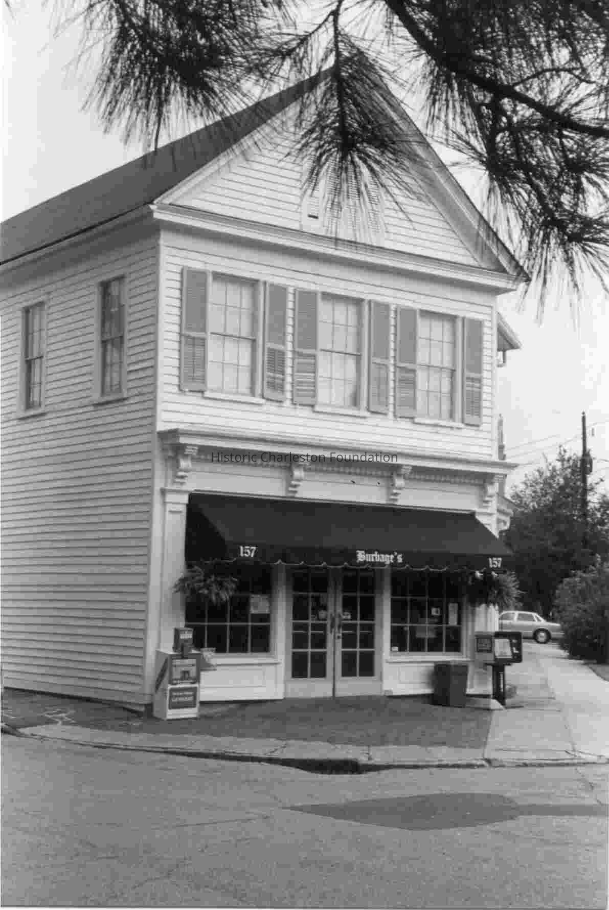 B&W photograph of 157 Broad Street (Lutjen's Grocery a/k/a Burbage's Grocery), street (front) elevation, northeast corner.Collection