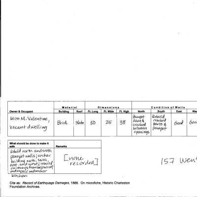 File contains historical research report (Butler, 2020); newspaper article (1970 DYKYC); house history from Information for Guides of Historic Charleston (1984); 1886 Earthquake damage assessment (pdf); Hurricane Hugo damage assessment (pdf).Collection