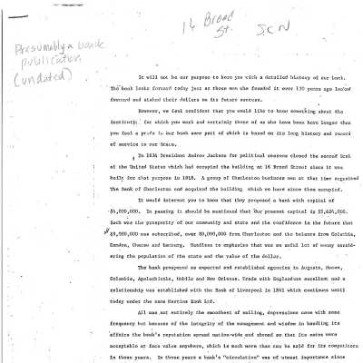 File contains typed historical/research notes about the building, including information presumably prepared by the bank itself; National Register Nomination Form; building history from Tour Guide Training Manual (2011).Collection