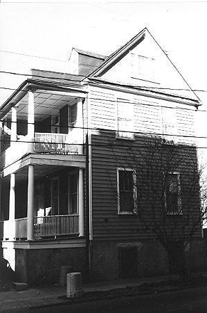 Constructed ca. 1839; rehabilitated 1991. This 2½ story wood Charleston single house constructed as an investment for Mrs. Sarah Cohrs, stands on a high stuccoed brick foundation and has side Tuscan piazzas, gable roof with a tripartite window, and paired chimneys with later Gothic-style arched hoods. It bears all characteristics of typical Charleston single houses of the Greek Revival period. By contrast, the brick house to the south at 15 Coming Street, follows the side-hall plan with pilaster caps supporting the base of the gable roof. Both of these houses experienced severe deterioration since the 1960s, although 17 Coming has undergone historical rehabilitation. 15 Coming remains divided into apartments, with a facade that was poorly rebuilt in the 1980s. (Poston, Buildings of Charleston.)