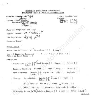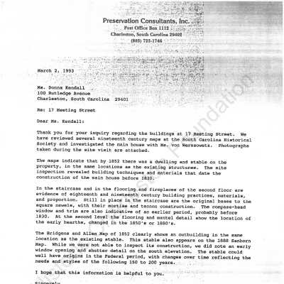 File contains research report (Butler, 2015); FOHG tour scripts (2005, 2015); letter from Preservation Consultants (1993) with some historical and architectural invormation, with accompanying photographs (photocopies); Hurricane Hugo damage assessment.