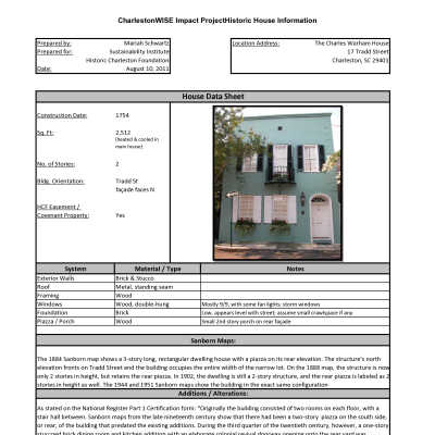 17 Tradd Street (Charles Warham House)Entry/Object ID