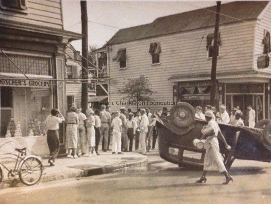 Spring Street, Street corner, President Street, Historic buildings--South Carolina--Charleston, Antique and classic cars, Traffic accidents--South Carolina--CharlestonLocation