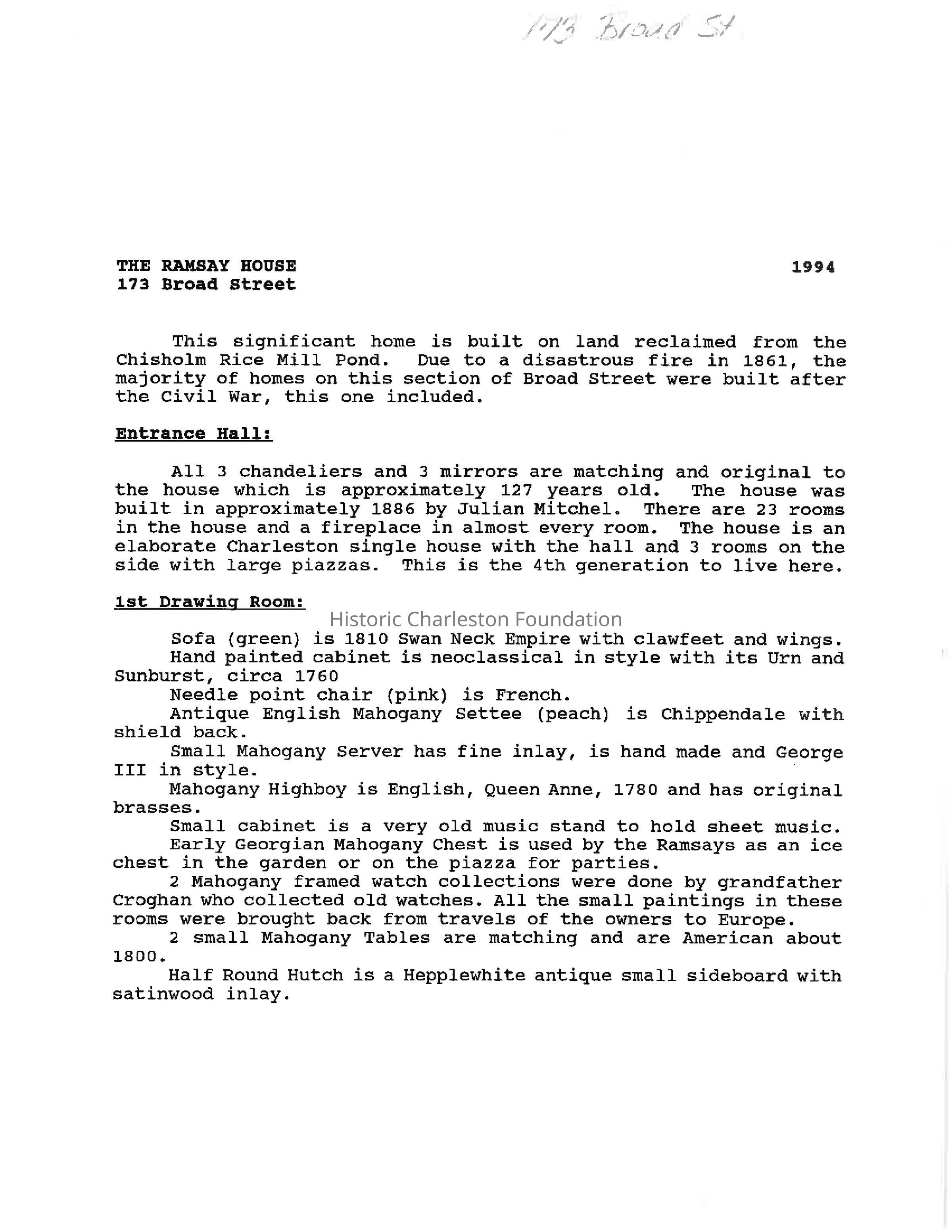 173 Broad Street (Prioleau-Miles House)Entry/Object ID
