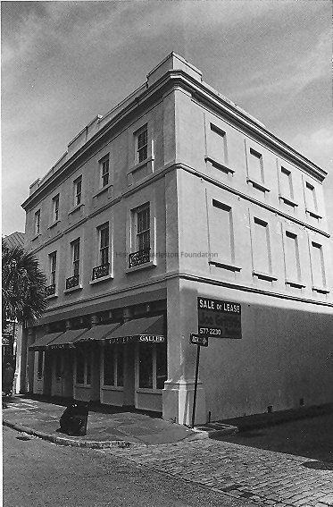 Two B&W photographs of the Stephen Lefevre Building (178-180 East Bay Street), front (west) elevation showing the southwest corner of the building and the street corner (East Bay and Cone Streets). Taken at slightly different orientations. (Photo B not scanned.)Collection