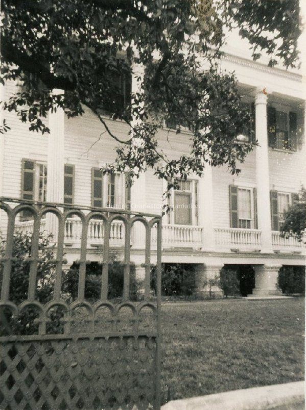 a: Ashley Avenue (east) elevation. Partial view of the house. Iron fence in front.
