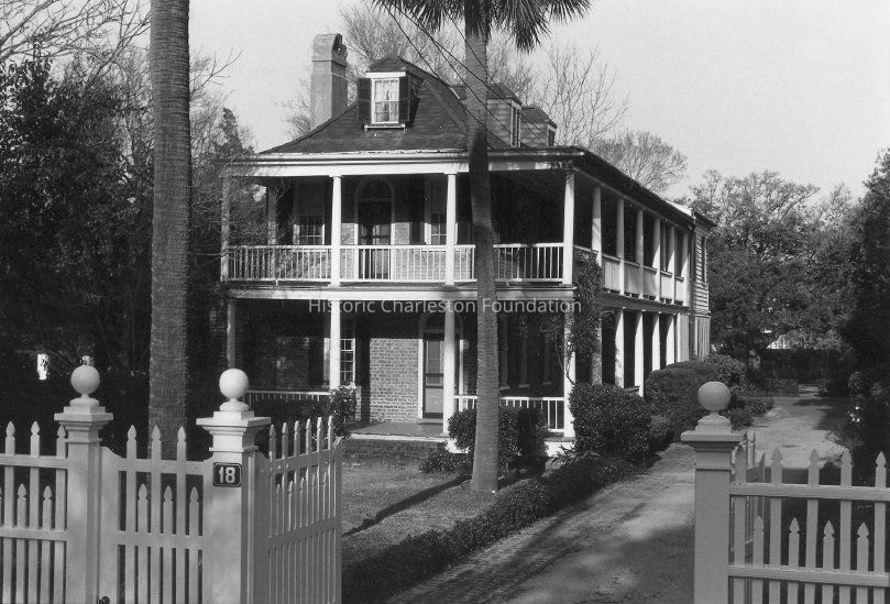Constructed ca. 1810; renovated 1928. Although often cited as indicative of West Indian architectural tradition, the Lusher House is simply a small Federal style Charleston single house with a bellcast hipped roof and wrapping piazzas, set back on the street, with a front garden space in the early tradition of this area. Hipped dormers project from the slate roof with tile ridge caps, and two interior chimneys rise above the north wall with stucco banding, corbeled caps, and Gothic arched hoods. Doorways with original semicircular fanlights ornament the front facade, but in single house fashion, the principal entry stands on the west elevation. In 1928 the eastern end of the piazza on the second-floor level was enclosed with a frame addition, while at the first floor level the piazza was screened in. Lusher served as the attorney for the previous owner. His wife was the sister of the noted architect Robert Mills.
