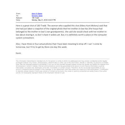 Photograph (scan) of 180 Tradd Street, showing the south (front) elevation.Collection