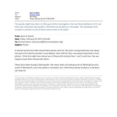 1918 Labor Day Parade on Meeting StreetEntry/Object ID
