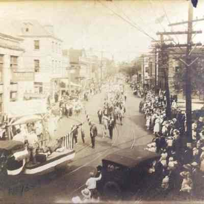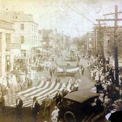 Four photographs (scans) of the 1918 Labor Day Parade on Meeting Street:
