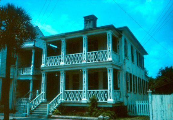 Color slide of 192 Queen Street (Lopez House), street (front) elevation, corner view.Collection