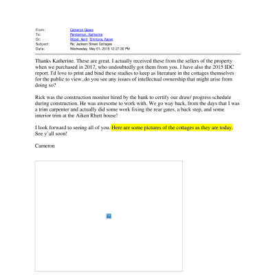 Provided to Katherine Pemberton via email on 5/1/2019. See Media tab.Created By