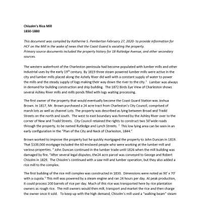 196 Tradd Street (Chisolm Rice Mill)Entry/Object ID