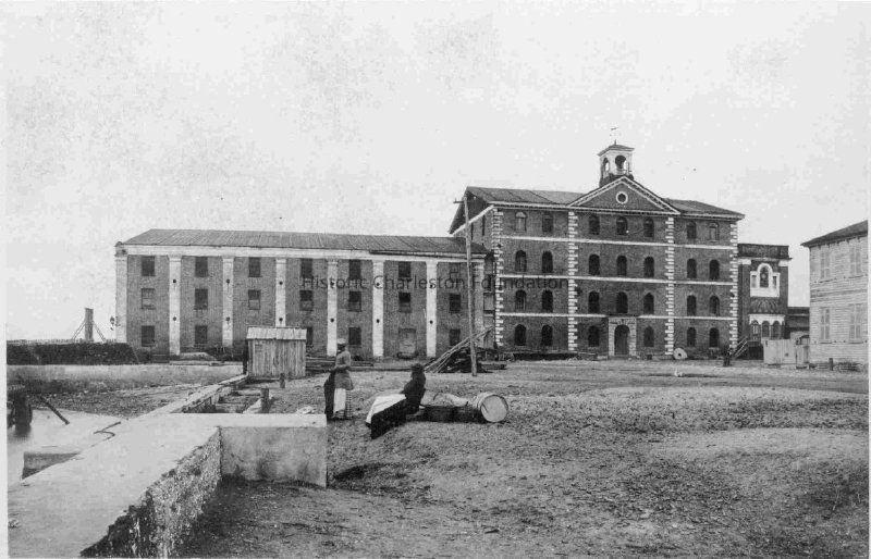 Constructed ca. 1830. After an 1826 fire destroyed a sawmill on this site, the Chisolm family completed a large masonry rice and lumber mill complex. Located at the western edge of Tradd Street, it looked out over the marshes of the Ashley River. Although damaged in a fire in 1859, the mill was subsequently rebuilt and continued to operate until it was virtually destroyed in the hurricane of 1911, an event which also dealt a final blow to the rice industry in the Lowcountry. Acquired first by the U.S. Lighthouse Department for its headquarters and later by the U.S. Coast Guard, this property continues in the hands of the latter service. The mill's main block, a four-story building with a cental pedimented pavilion, arched windows, and decorative quoins, surmounted by a cupola, no longer survives. Nonetheless the Coast Guard uses the remaining west wing, a three-story brick building, as a storage area, machine shops, and a post exchange. A two-story building constructed ca. 1915 serves as headquarters for the base. (Poston, Buildings of Charleston.)