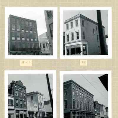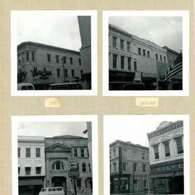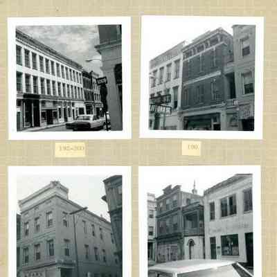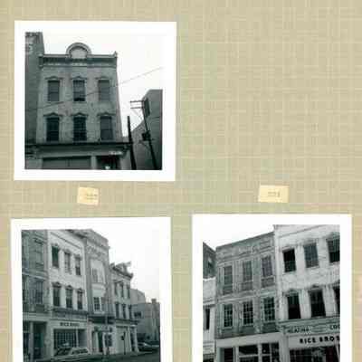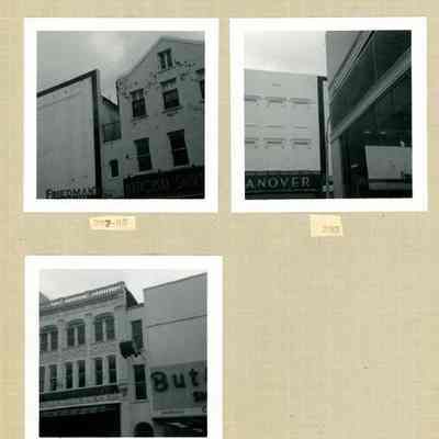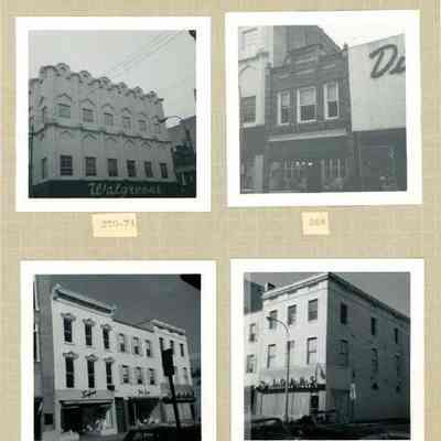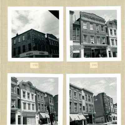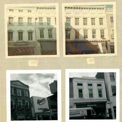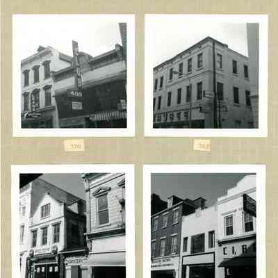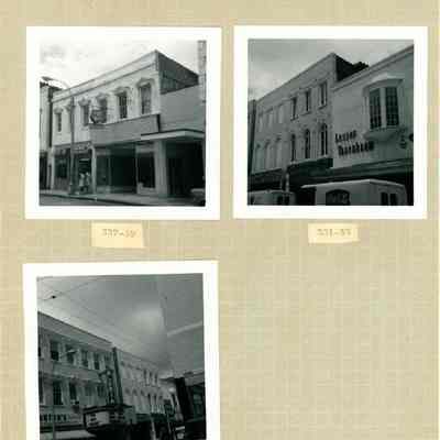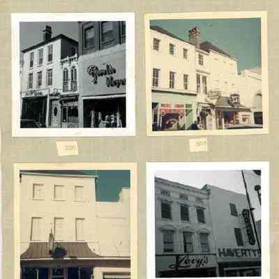 Survey of King Street buildings from 150-381 King Street. By HCF, possibly Frances Edmunds, and dated August, 1967. Photographs are mounted on photograph album pages. See records KING.GEN.002c.1-11 for individual photographs.