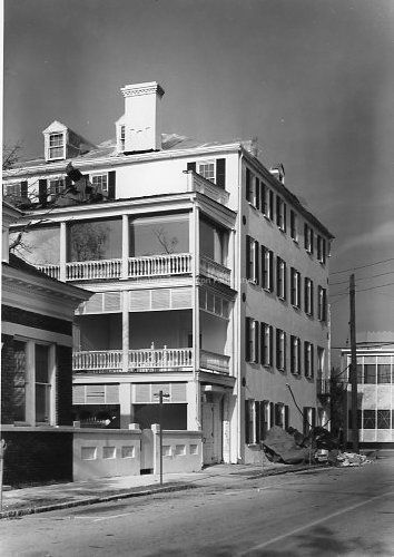 B&W photograph of 2-4 Vanderhorst Street after Hurricane Hugo.Collection